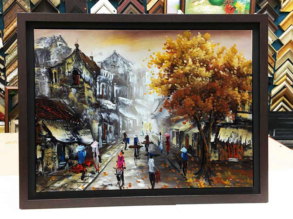 SLIM SIDE SKIRTING FRAME- This is a side frame for oil painting. This type is thin rim like wood frame which normally wood textured frame black, white or any colour dyed to match the painting. We specially customise this type of frame for the painting which gives a full look of the art piece without distracting with the frame.